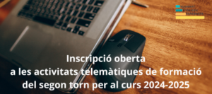 Del 7 de gener i fins al dimecres 15 de gener, us podeu inscriure a les activitats formatives telemàtiques que s’ofereixen per aquest segon torn.