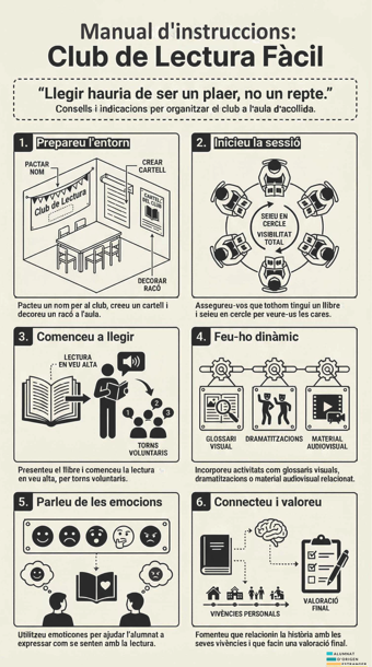 Podeu consultar una versió reduïda de les indicacions per organitzar un Club de Lectura Fàcil a l’Aula d’acollida en aquest enllaç: Manual d’instruccions Club de lectura fàcil Aula d’acollida