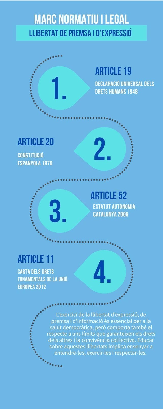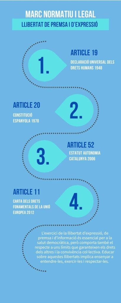 - Àmbit internacional: L’article 19 de la Declaració Universal dels Drets Humans (1945) i l’article 11 de la Carta de Drets Fonamentals de la UE.