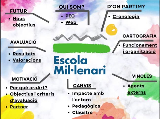 El programa araArt ens ha permès ordenar, ampliar i consolidar el treball engegat, tot vinculant les arts a altres àrees d’aprenentatge, implicar a tot el claustre, a través de la formació interna de centre i afavorir un canvi de mirada en els processos d’aprenentatge i també ens ha permès regularitzar la relació amb el nostre agent artístic extern.