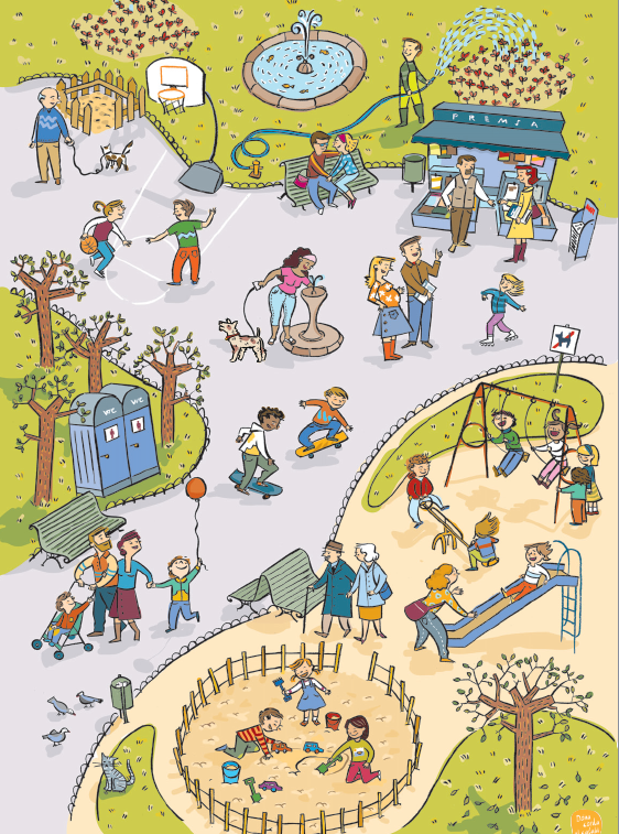 El temes tractats són: la casa, el parc, el bar i el restaurant, la ciutat, la muntanya i el camp, la platja i el port, el mercat i el supermercat, el temps, els transports, els oficis, el centre cívic i el centre comercial. Podeu consultar-les, en format PDF, tant amb els noms impresos com sense.