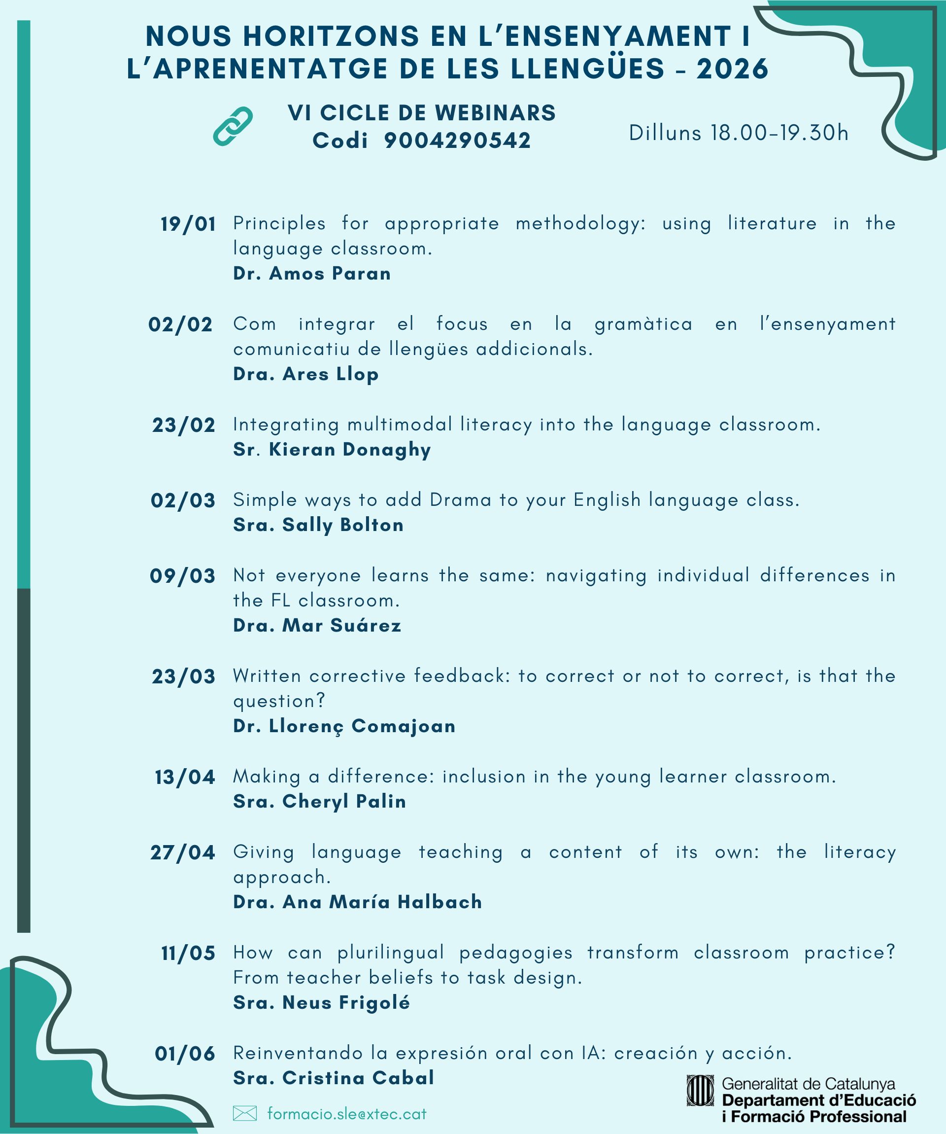 VI Cicle de webinars “Nous Horitzons en l’ensenyament i l’aprenentatge de les llengües” 2025-2026