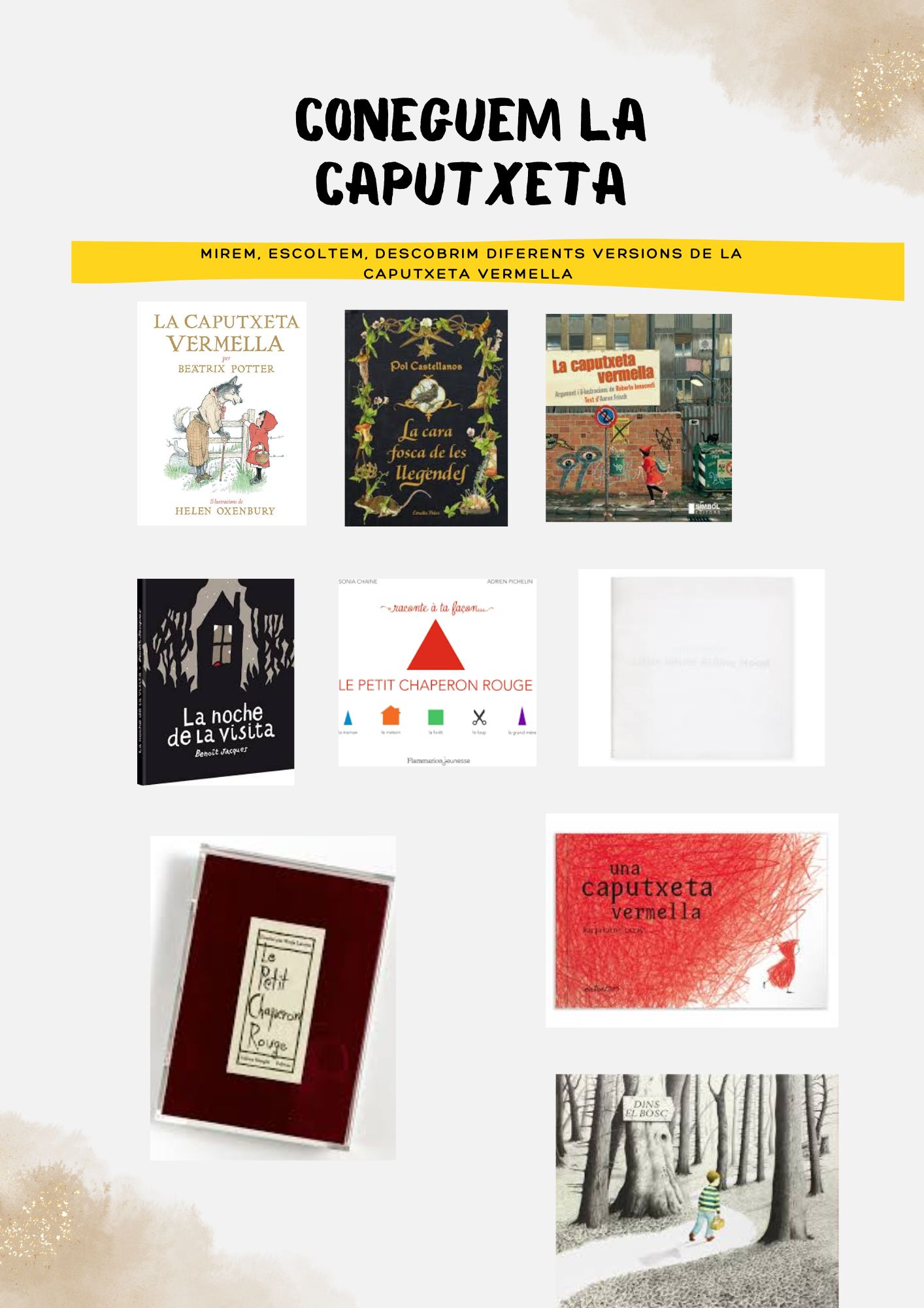 • Treballar la perspectiva de gènere a través de les diferents versions del conte de la Caputxeta vermella.