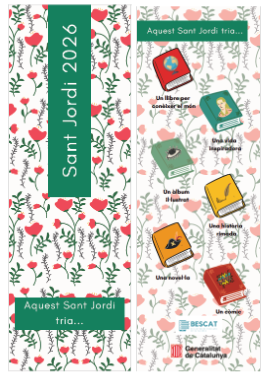 Us presentem un cartell i un punt de llibre per fer-ne ús al centre educatiu i/o repartir perquè s’emportin a casa i puguin anar a les parades de Sant Jordi o a la biblioteca pública amb aquesta idea d’escollir lectures variades.