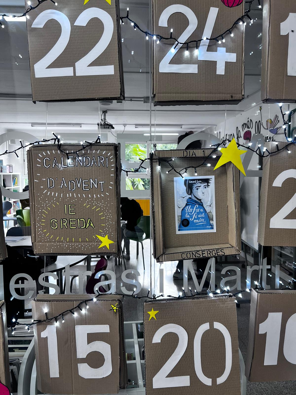 Per dur-la a bon port, han comptat amb l’entusiasme i la participació dels alumnes de l’optativa de Visual i Plàstica de 4t d’ESO i de la seva professora Gisela Arimany, que s’han encarregat del disseny i la producció. Cada dia del mes de desembre amaga la portada d’un dels llibres recomanats pel grup classe. Aquestes prescripcions literàries s’han dinamitzat des de les tutories d’infantil i primària i des del Pla lector de català. Cada un dels 24 dies que falten per a l’adveniment del Messies es corresponen a un dels 22 grups classe del centre mentre que els dos restants han estat recomanacions dels conserges i de l’equip directiu.