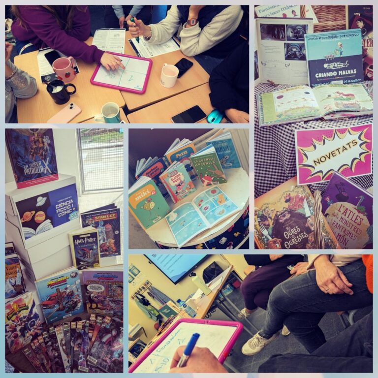 A més, aquest alumnat mensualment dinamitza les recomanacions lectores perquè durant l’estona de lectura que el centre té dins l’horari escolar es puguin valorar aquestes propostes. Al centre, hi ha dos punts on es poden trobar llibres: un és el vestíbul, on passa tothom i és un punt cèntric i, també hi ha l’espai d’educació infantil perquè els més petitons de l’escola tinguin els llibres més a l’abast. Els passadissos també són un altaveu lector perquè s’hi pengen suggeriments. Cada mes s’escull un tema i demanen al bibliobús que els faciliti els llibres de la temàtica escollida.