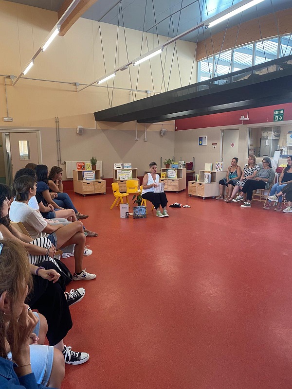 Va ser un laboratori molt especial! Per una banda els mestres van poder gaudir en pròpia pell de l’experiència del laboratori. En aquest cas no eren només espectadors sinó que n’eren els protagonistes! Per altra banda, van crear un espai per parlar dels laboratoris de lectura: què ofereixen als alumnes? Quines habilitats s’hi treballen? En què es diferencien d’altres tipus de dinamitzacions de lectura? Què ens emportem d’una d’activitat així? Finalment, els mestres es van endur un bon recull de llibres i idees per portar a les seves aules.