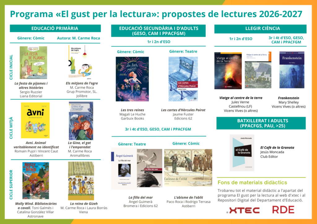 Aquestes són les propostes de llibres per al programa El gust per la lectura del curs 2026-2027.