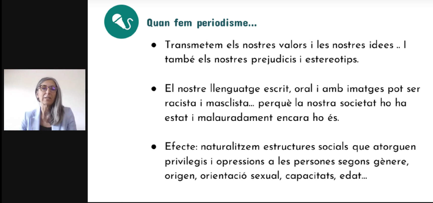Dl 15 maig 2023Hem convidat la periodista especialista en gènere i comunicació, Cristina Baulies, per reflexionar sobre l'important paper que tenen els mitjans de comunicació per promoure la igualtat, mostrant les dones i els homes sense estereotips, de manera diversa i equilibrada, i respectant la dignitat i el valor de la persona humana”.