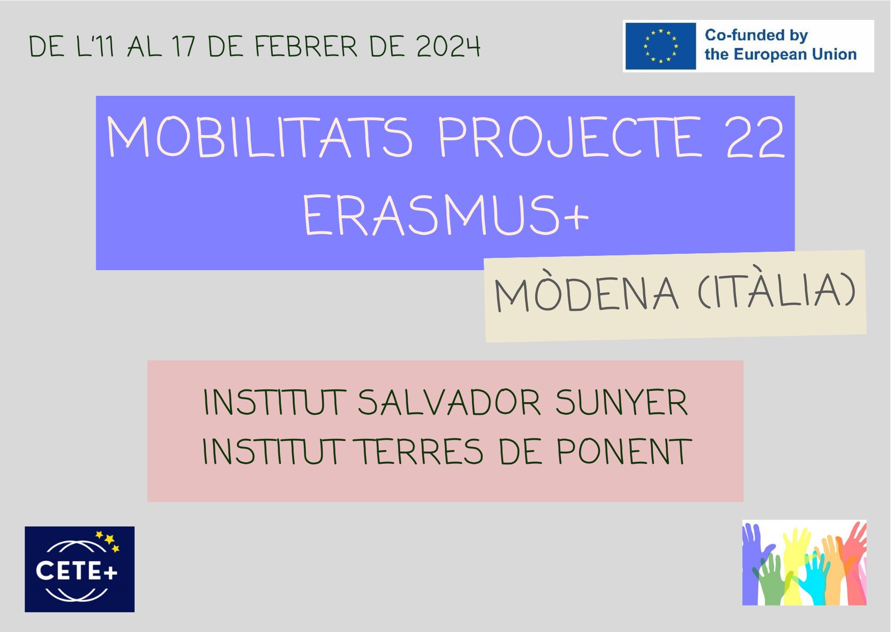 Darrers esdeveniments SECO Erasmus+CETE Projecte 2021: https://padlet.com/espaiscomunitat/5ll4k2gkghqfb1dx Erasmus + CETE Projecte 2022: https://padlet.com/falba3_1/seating-chart-ywdlfw83pw92mb00 https://projectes.xtec.cat/cete/wp-content/uploads/usu2644/2024/02/5-al-10-febrer-24-Dortmund-Alemanya-1-1.mp4 https://projectes.xtec.cat/cete/wp-content/uploads/usu2644/2024/02/11-al-17-febrer-24-Dortmund-Alemanya.mp4