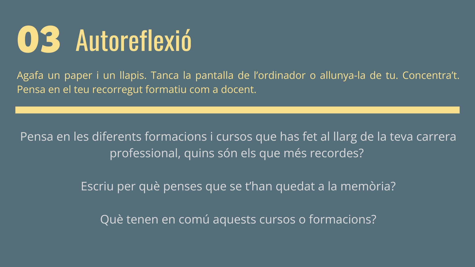 Sovint recordem el contingut d’aquelles formacions que ens van fer connectar amb alguna emoció present o viscuda, que ens van fer estar en una actitud activa sigui experimentant o bé, explicant, argumentant, raonant, observant, recordant o reflexionant. Eren formadors i formadores que ens van fer connectar amb la nostra emoció i ens van fer estar en una actitud participativa i activa.