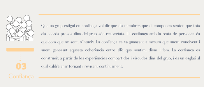 Quan un grup està en confiança, les expectatives són les adequades i en general, es compleixen. Si un grup no està en confiança, els seus membres no s’obriran, ni mostraran la seva part vulnerable, mostrant una màscara o façana d’ells mateixos, que no sempre serà des de l'honestedat.
