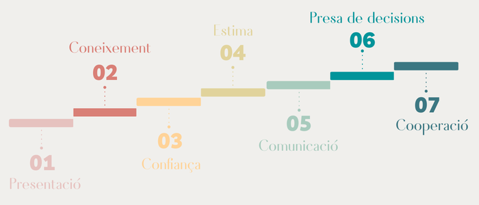 A continuació, desenvolupem els set esglaons de l’Escala proventiva i us enllaçarem recursos per tal que els pugueu anar desenvolupant amb els diferents grups.