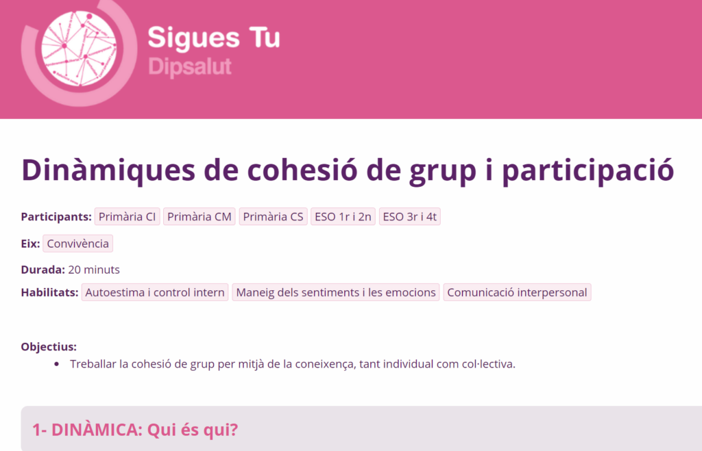Dinàmiques de cohesió de grup i participació del Programa Sigues Tu de la Diputació de Girona.