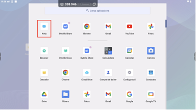 - Des del menú d’aplicacions del panell que es desplega fent lliscar el dit cap amunt. En aquest cas l’aplicació s’anomena “Nota”.