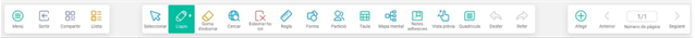 L’aplicació “Pissarra” disposa d’una barra d’eines situada al centre del marge inferior de la pantalla, així com d’eines addicionals als laterals.