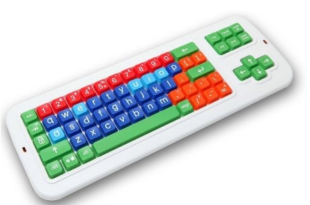 Teclat de tecles grans sense fil ni commutador. Utilitza un codi de colors que permet identificar de manera senzilla i ràpida els grups de lletres. Pensat per a l’atenció a la diversitat i l’alumnat amb necessitats educatives especials.