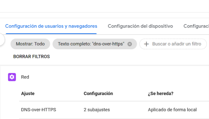 A la pàgina Configuració de usuarios y navegadores cal cercar el camp DNS-over-HTTPS: