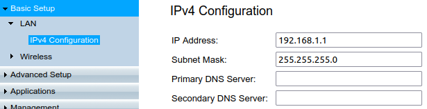 Els camps que caldria canviar corresponen al Primary DNS i Secondary DNS. En altres encaminadors, aquests camps poden aparèixer com a Servidor DNS1 i Servidor DNS2: