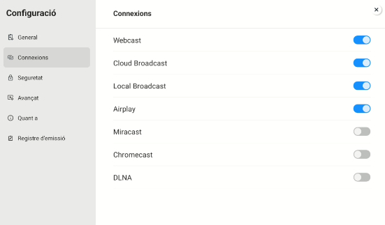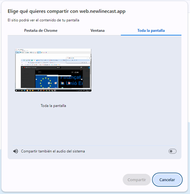 L’acció es duu a terme mitjançant la mateixa aplicació “Newline Cast” prement l’opció de “Cloud Broadcast”