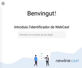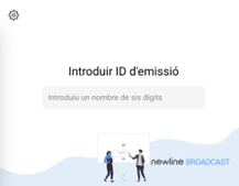 Des de l’ordinador dels participants es podrà accedir al navegador i obrir l’URL broadcast.newlinecast.app. Tot seguit, cal introduir el codi ID de 8 dígits.