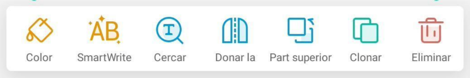 L’aplicació “Pissarra” disposa d’una barra d’eines situada al centre del marge inferior de la pantalla, així com d’eines addicionals als laterals.