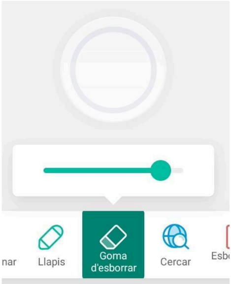 Per fer-la servir, s’ha de seleccionar la seva icona i establir la mida de goma desitjada. En qualsevol moment, també es pot utilitzar la mà per esborrar traços fets amb llapis o pinzell.