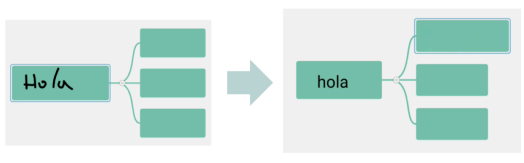 Si s’ha activat el reconeixement d’escriptura, allò que s’escrigui a mà a cada casella del mapa es convertirà en text digital.