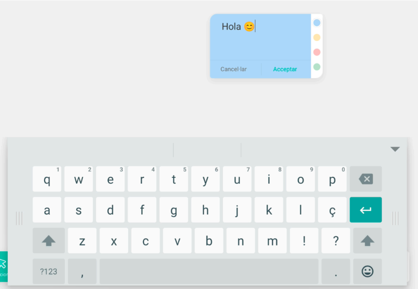Es pot enganxar una nota adhesiva a la pissarra i escriure-hi al damunt amb el teclat. També s’hi poden afegir emoticones usant les que ofereix el teclat.