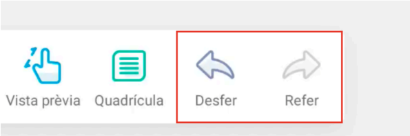 Cal tenir present que si es clica la icona de tornar enrere es desfà la divisió i es visualitza tot en una única pantalla. Si es torna a clicar la icona de dividir pantalla el contingut es desa en una nova pàgina.