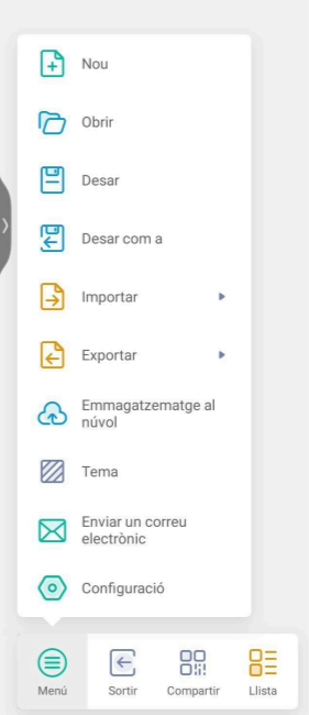 Exportar: Permet exportar les pàgines de la pissarra, seleccionant el format d’exportació.