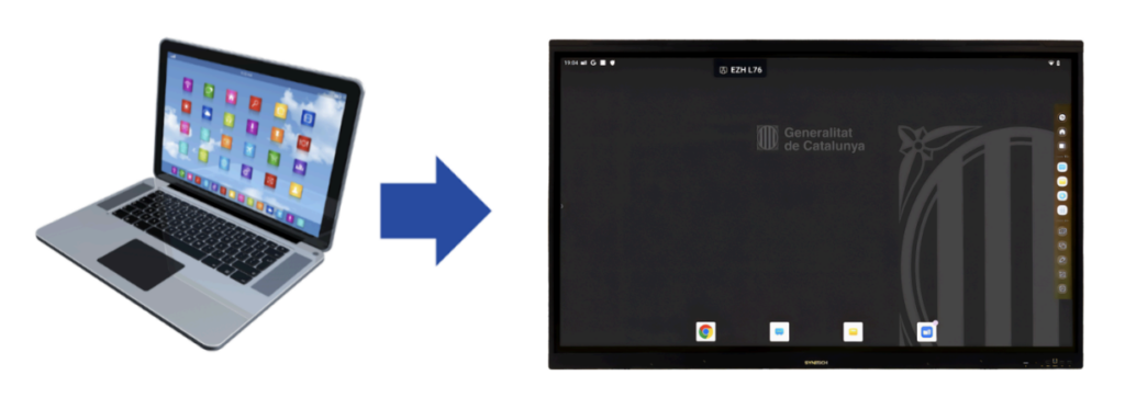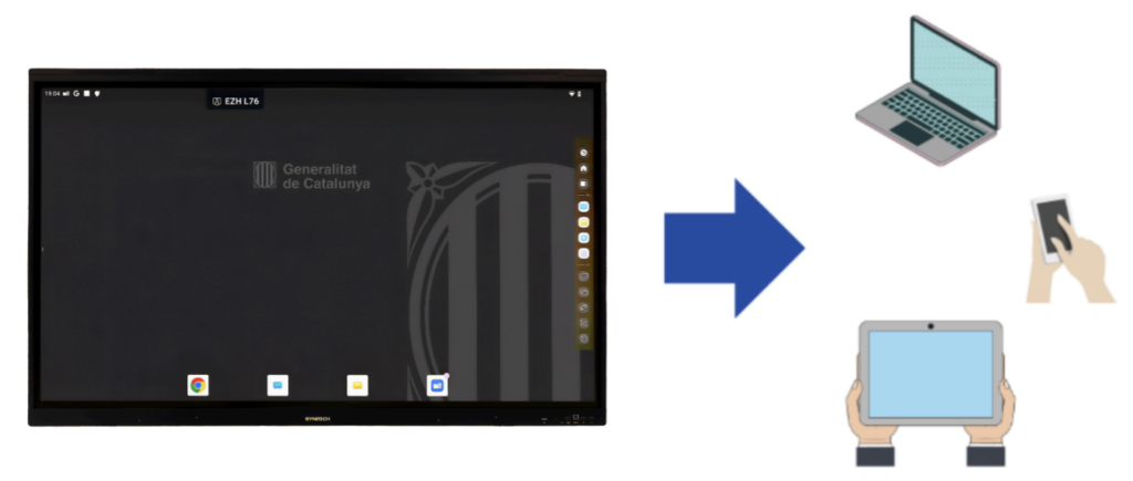 Pot ser útil compartir la pantalla des del panell digital cap a altres dispositius perquè l’alumnat vegi més a prop el contingut del panell, pugui capturar-lo o hi tingui accés si està connectat remotament.