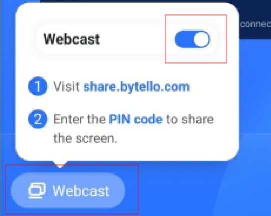 Es pot compartir el panell cap a l’ordinador a través de wifi mitjançant l’aplicació Bytello Share. Tot i que és una bona opció per la seva facilitat i rapidesa, té certes limitacions, ja que només permet connectar 9 usuaris simultàniament. Per fer-ho, cal seguir els següents passos: