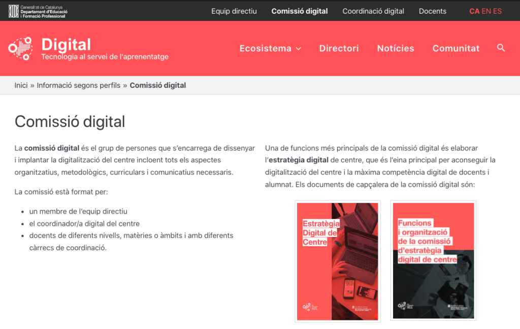 Documents sobre l’Estratègia digital de centre i de les funcions i organització de la comissió digital de centre