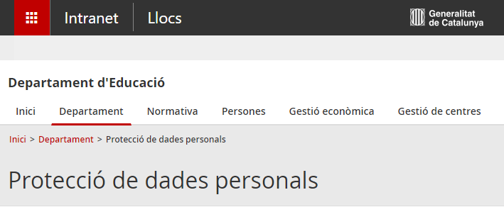 A la Intranet del Departament d’Educació podeu trobar tota la informació relacionada amb la protecció de dades als centres educatius.