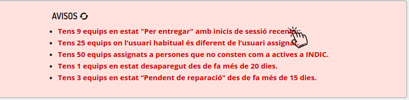 En fer clic en cada avís podreu accedir directament als equips afectats i corregir la situació.