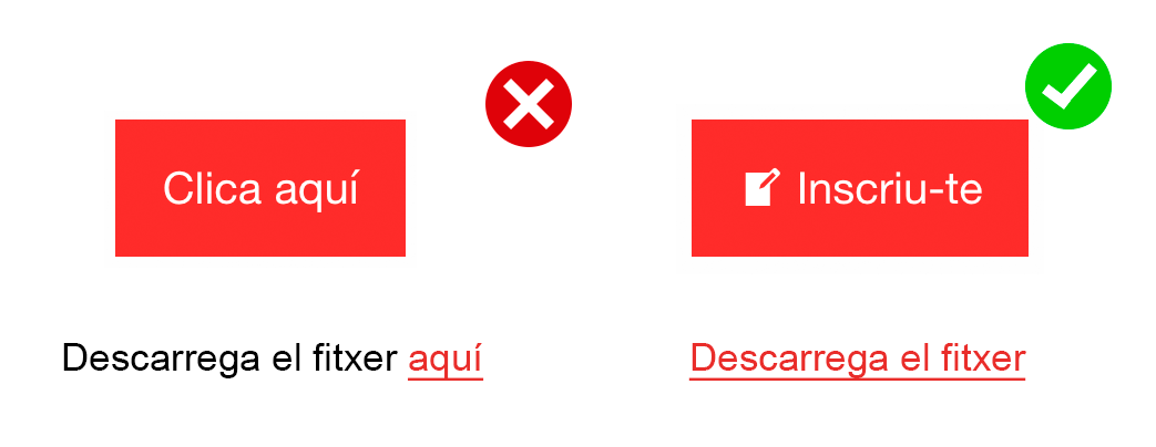 El text dels botons i enllaços ha de ser descriptiu, ja que d’aquesta manera les persones que fan servir els lectors de pantalla sabran quina acció fa el botó.