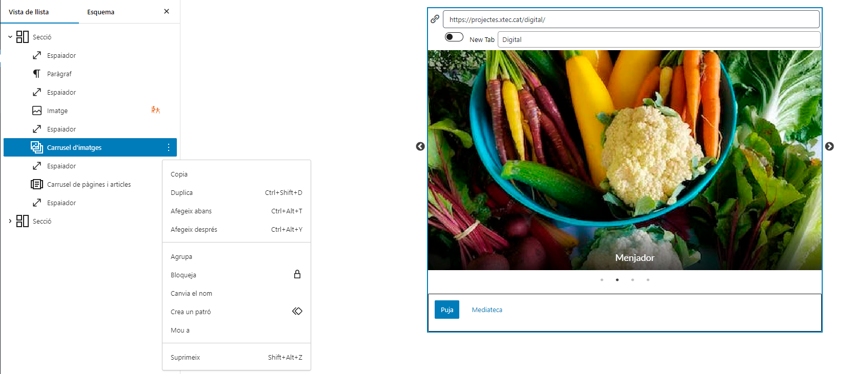 1. Inserir un bloc Carrusel d’imatges