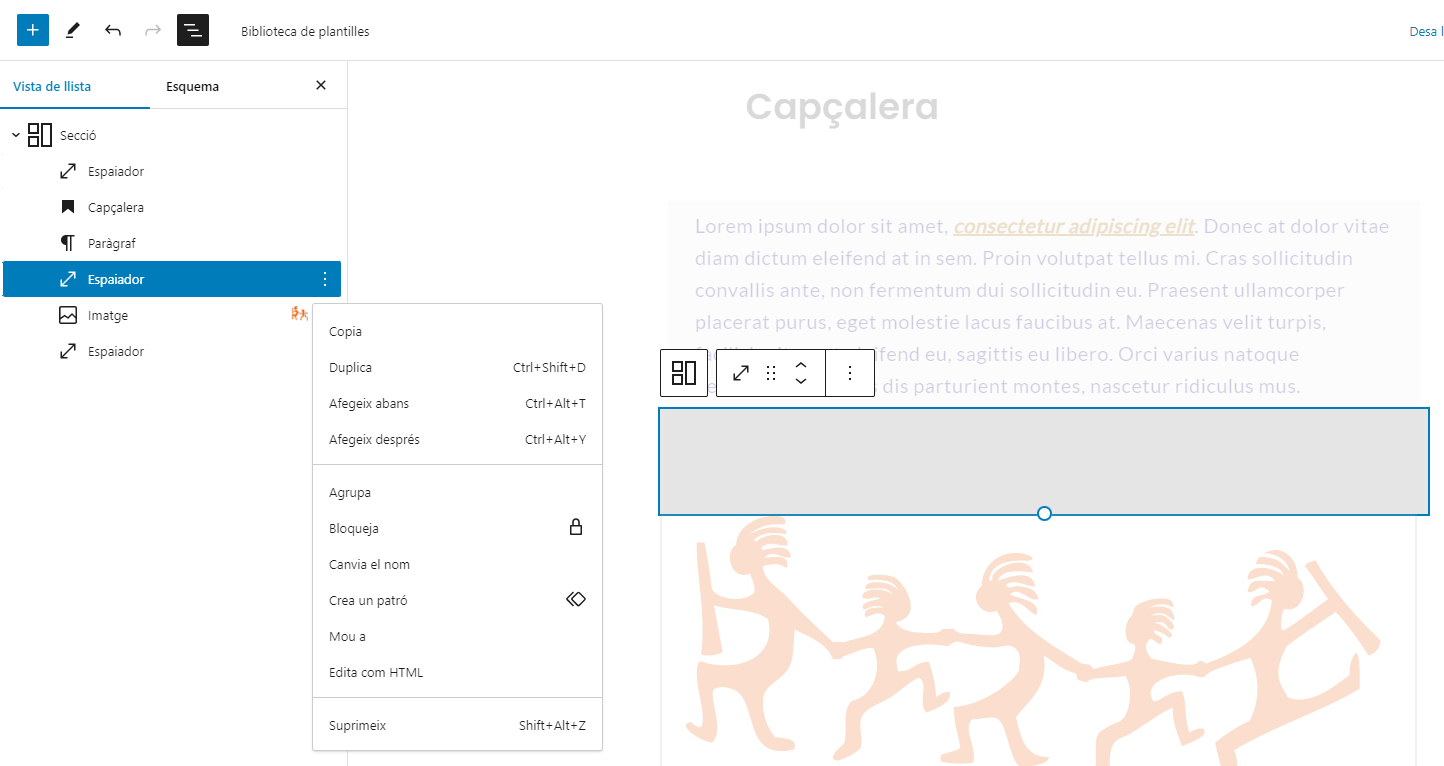 Un cop heu afegit el bloc Espaiador, podeu editar la seva mida: