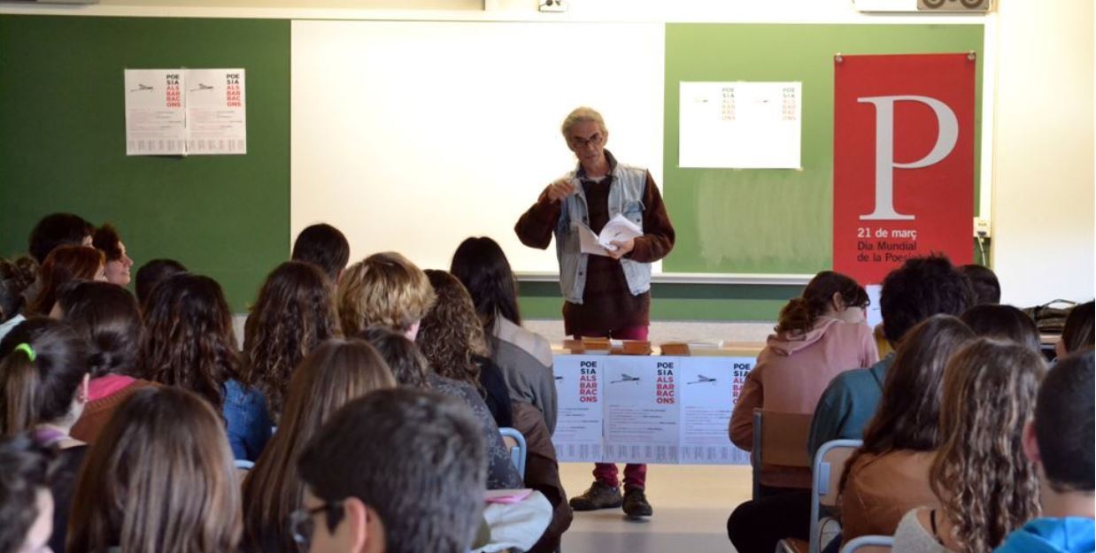 DESCRIPCIÓ DE L’ACTIVITAT. Poetes, cantants, cantautors, glosadors i rapers de la cultura catalana convidats a recitar versos o a cantar poemes en un institut públic de secundària. Alumnes llegint obres literàries senceres en veu alta, lectures simultànies a tots els carrers i places d’un poble batejats amb nom d’escriptor, gires d’alumnes recitant poesia a instituts de pobles veïns…