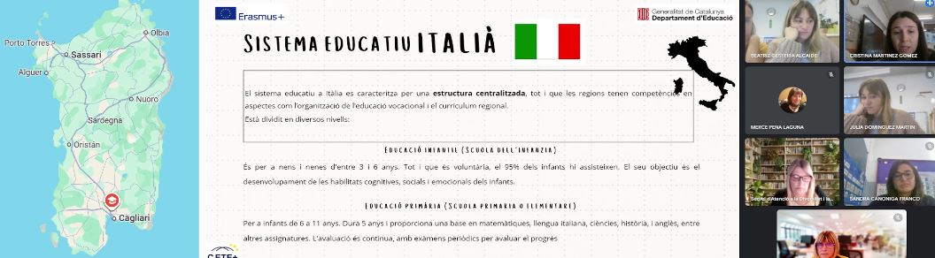 La segona parella formada per dues docents seleccionades per a fer la mobilitat de 2 de les escoles participants, l’Escola Fluvià de Barcelona i l’Escola Eugeni d’Ors de Valls van ser acollides en “Istituto Comprensivo di Sestu a la localitat de Cagliari”, illa de Sardenya, Itàlia.