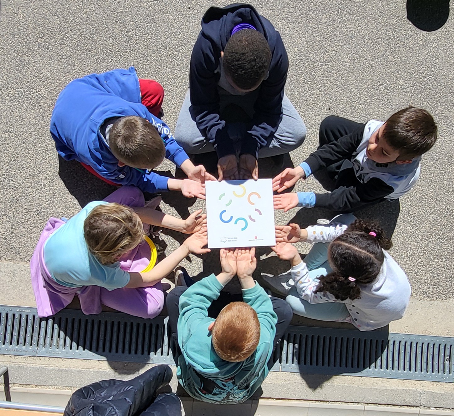 placa de centres en dansa amb 5 alumnes al voltant que la subjecten