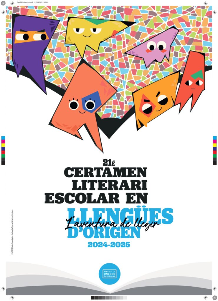 Disseny de la portada de la publicació anual de presentació del XXI Certamen Literari Escolar en Llengües d’Origen, on es recullen les millors redaccions presentades per alumnes de les Escoles en la seva llengua d’origen i la seva traducció al català.
