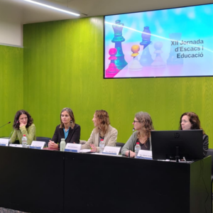 Tot seguit, la jornada va continuar amb una taula rodona i presentació d’experiències per part de l’equip coordinador del programa Escacs a l’escola i de l’Observatori d’Escacs i educació de la Universitat de Girona i un dels seus membres, Marc Baig.