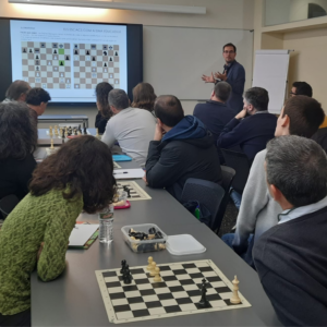 L’última conferència del matí va anar a càrrec d’Esteban Jaureguízar, el qual havia ofert el taller pràctic del dia anterior, la qual portava per títol “El potencial del juego del ajedrez y su relación con los aprendizajes curriculares”.