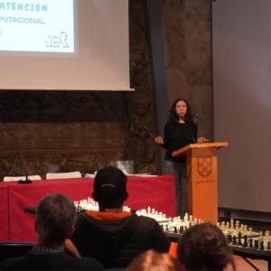 La conferència inaugural va anar a càrrec de Leontxo García, periodista basc especialitzat en escacs, reconegut arreu del món, també escriptor i conferenciant, i portava per títol “El ajedrez enseña a pensar, con o sin IA”. A continuació, la canària Lorena García, coordinadora del programa d’escacs educatius “Educando personitas, no Campeones ni Campeonas” del Govern de les Illes Canàries i coautora d’un estudi científic sobre escacs i educació emocional a la Universidad de La Laguna, va oferir la xerrada “Las emociones juegan al ajedrez. Ajedrez y educación emocional”. García va parlar sobre com els escacs poden ajudar l’alumnat a nivell emocional, augmentant l’autoestima, la confiança, l’empatia…, i com també influeix en aquestes millores la metodologia utilitzada a l’aula.