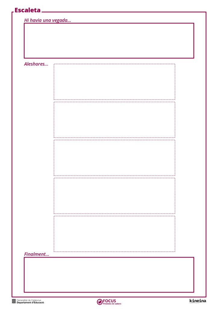 L’escaleta és com l’índex de capítols d’un llibre: és la llista d’escenes que ens condueixen des de l’inici (plantejament) fins al final del relat (desenllaç), passant per tots els entrebancs (nus), explicacions, demostracions, exemples, metàfores…
