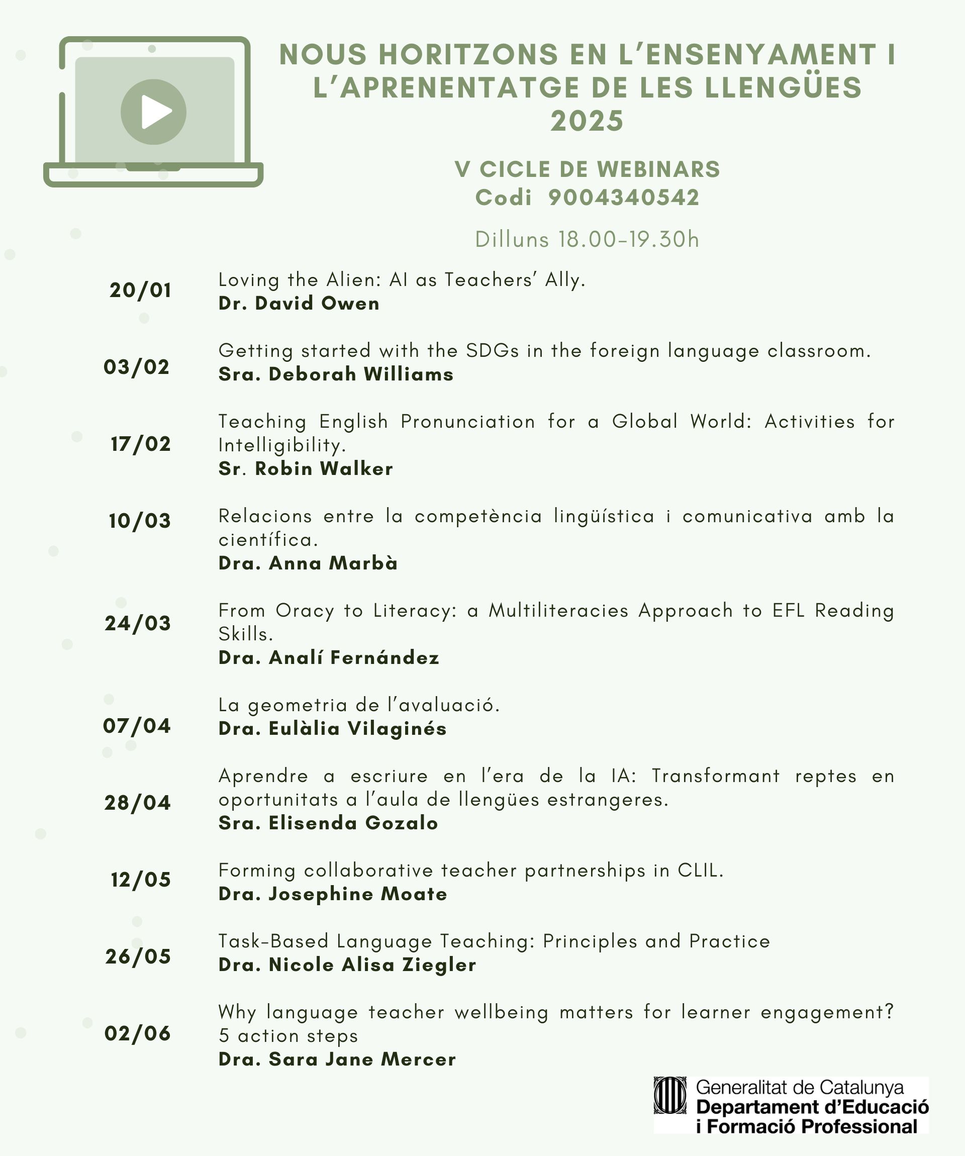 VI Cicle de webinars “Nous Horitzons en l’ensenyament i l’aprenentatge de les llengües” 2025-2026