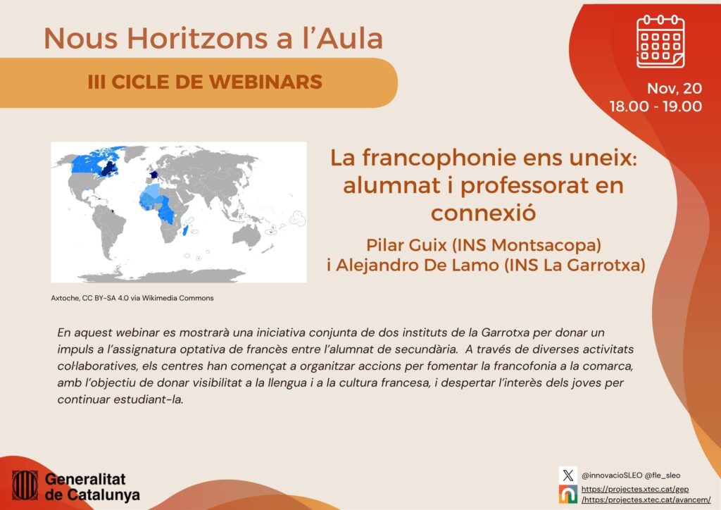 Si no has rebut el correu del Servei de Llengües Estrangeres amb l’enllaç per a la sessió, si et plau, contacta amb nosaltres a l’adreça formacio.sle@xtec.cat.