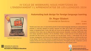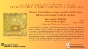T’esperem el pròxim dilluns 10 de març a les 18.00 h al quart webinar del V cicle “Nous Horitzons en l’Ensenyament i l’Aprenentatge de les Llengües” 2025 amb la participació de la Dra. Anna Marbà Tallada de la Universitat Autònoma de Barcelona (UAB), biòloga i doctora en Didàctica de les Ciències. … Llegeix més»